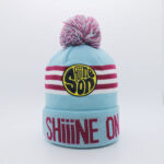 Custom Knitted Pom Pom Beanie Hat With Embroidery Logo