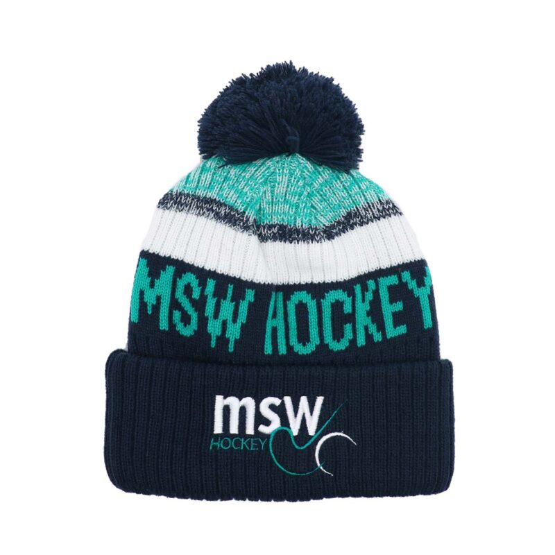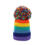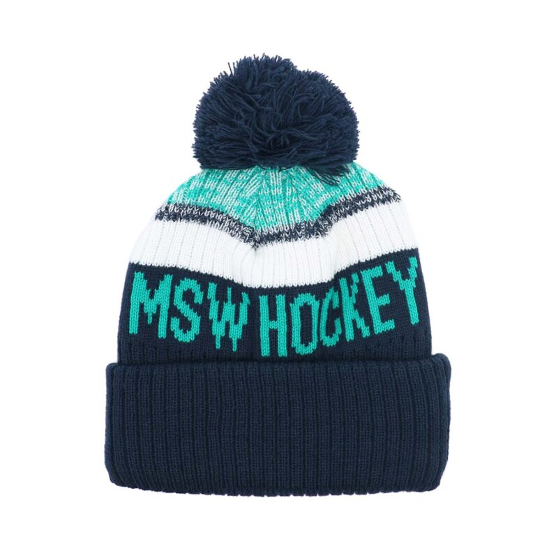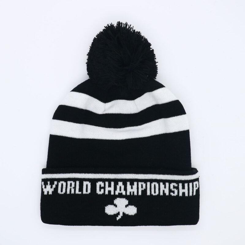 Custom Wool Blend Yarn Chunky Knit Cuff Big Bobble Hat With Embroidery Badge Logo